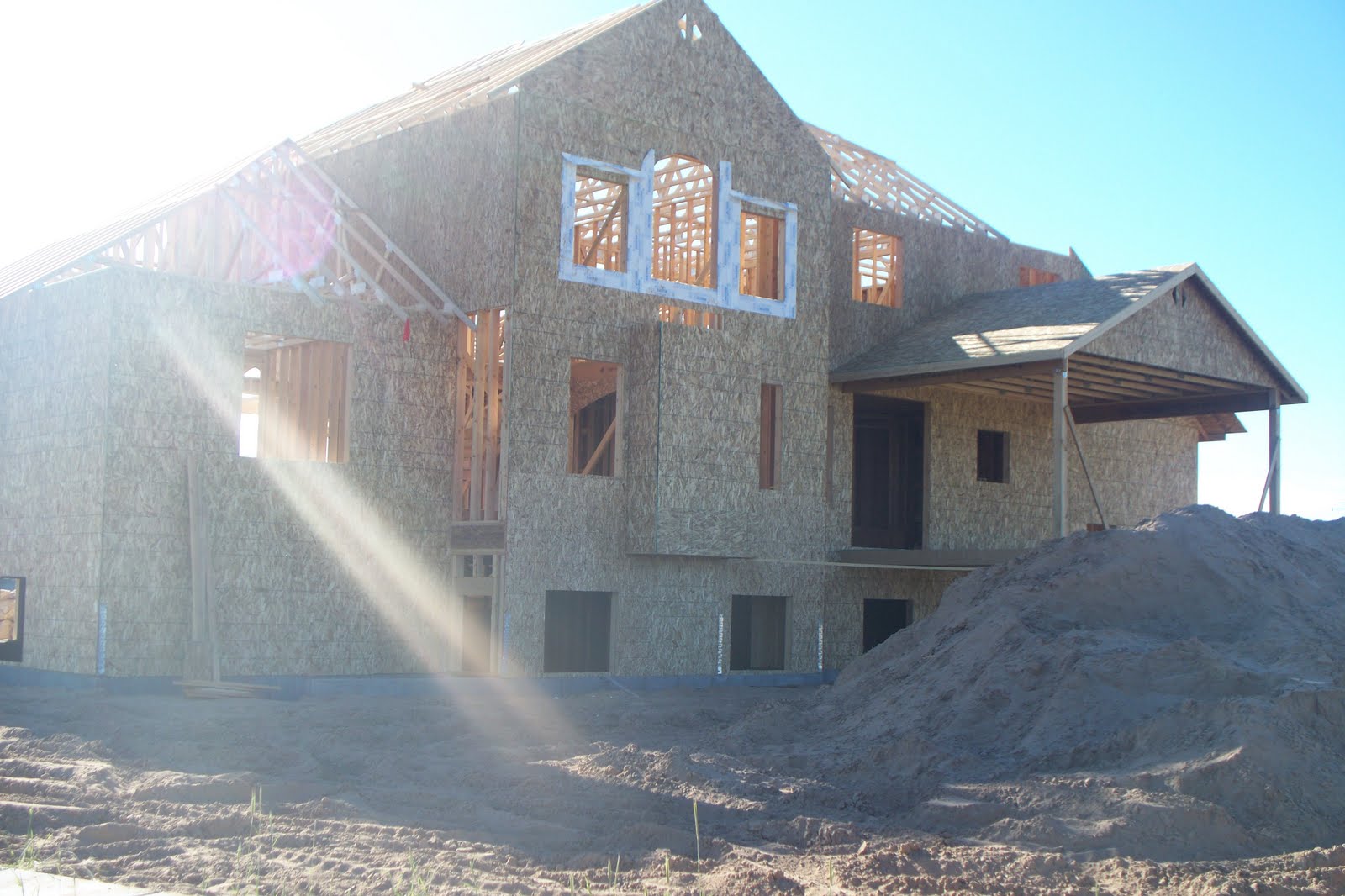 I was looking at one of my friends blogs and it said the last update we did was five weeks ago. So I thought I better update. Basically the whole month of July. So what's been happening? Well a whole lot of stress building a house and trying to get the other ready to sell. I have loved building our house. It's been so fun picking out things and watching it come together. But stressful because I have been doing it on my own. Don't get me wrong doing it on my own has it's ups. I get things the way I want them. I'm so grateful Dan trust me to do a good job. kinda reminds me of our wedding. I did everything. I think Dan saw most of the stuff on the wedding day. Anyways it's been stressful at times when I need input. But Dan is to busy with work right now to really worry about the house. I try not to complain because I am truly grateful to have this opportunity in my life. well here are some picture of the house. Digging the Hole... Starting to frame... Framing Done. I was surprised at how quick these process took... Roof On... Brick done... There is a lot more going on inside the house. I will try and post some of the inside soon.